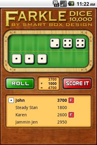 Farkle Dice to szybka, darmowa gra w kości dla dwóch do czterech graczy. Celem jest zdobycie jak największej liczby punktów. Możesz grać z przyjaciółmi lub z nieznajomymi. Możesz również grać online. Jest cztery mapy do gry. Każda mapa ma cztery wioski. Jeśli dotrzesz na szczyt mapy, będziesz liderem.